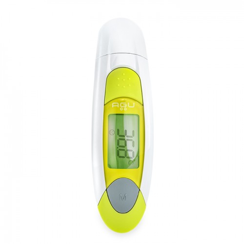 AGU Eaglet измерва температура в ухо без капачка, а тази на чело с капачка. Термометърът може да измерва и температура на околна среда.