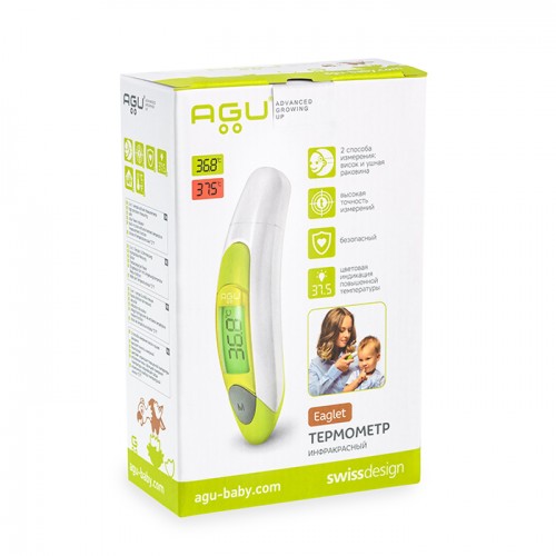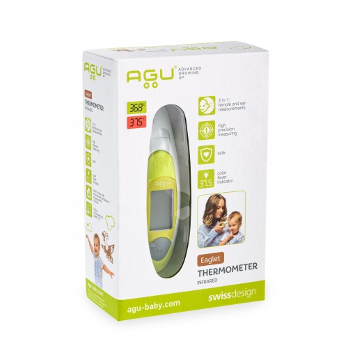 Инфрачервеният термометър AGU Eaglet е създаден специално за бързо и точно измерване на телесната температура на новородени,бебета и деца. Благодарение на уникалните технологии, използвани в термометъра, всяко измерване дава точни температурни показания.