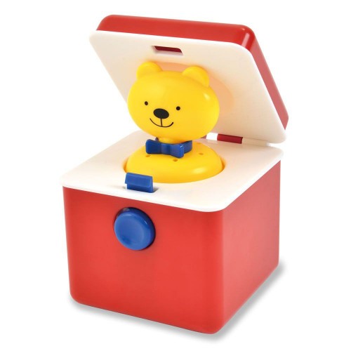 Натисни леко бутона и веселото мече ще изскочи, издавайки звук. След това го натисни обратно надолу и затвори капака, за да започне играта отново.Характеристики: