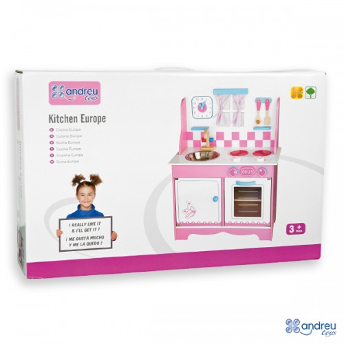 Тази дървена кухня с чудесен дизайн и цветовете ще осигури часове забавна игра на вашите деца.Характеристики: