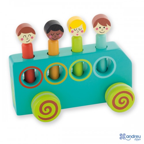 Забавна дървена играчка с четири цветни фигурки, които отскачат нагоре-надолу с помощта на скрити пружинки.Характеристики:
