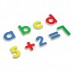 Комплектът съдържа магнитни букви и цифри, както и основните знаци, с помощта на които детето бързо ще се научи да събира, изважда, умножава и дели.