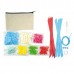 - Комплектът съдържа: портмоне в неутрален цвят, помпони, метална халка за окачване на готовия пискюл, цветни конци, мъниста, панделки, PVC ленти и лепило.