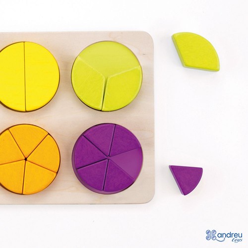 - Комплектът включва шест кръга, които са разделени на парчета, представляващи 1/6, 1/5, 1/4, 1/3, 1/2, 1/1.