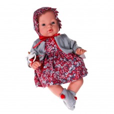 Куклата е с височина 36 см, облечена е в красива цветна рокля и шапка в същия десен. Крачетата й са обути със сиви терлички.Характеристики: