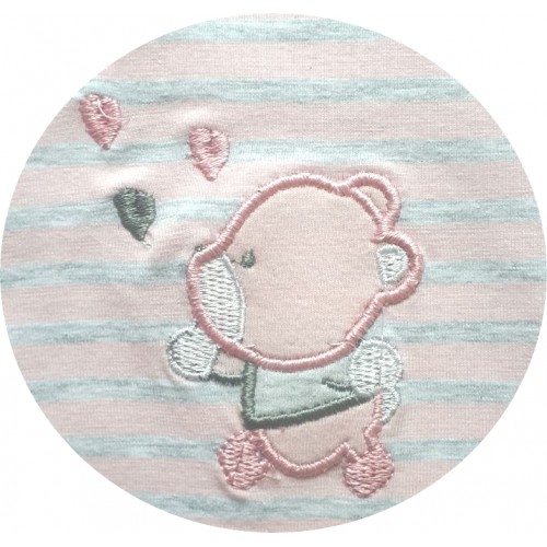 Бебешки гащеризон с предно закопчаване с копченца, изработен от нежна, памучна материя. Има забавна бродерия с меченце.Характеристики: