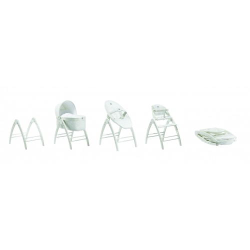 Иновативната Angel – линия от BabyDan е нова концепция, която обединява кош за новоредено, шезлонг и столче за хранене в едно, с основа под формата на A.Характеристики: