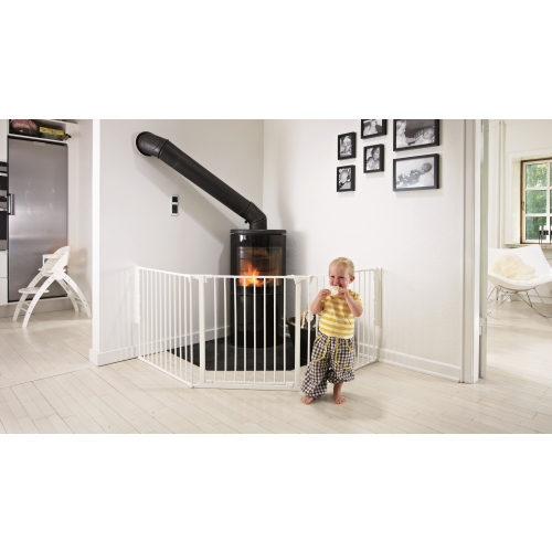 Тази комбинирана преграда се монтира с помощта на винтове за стена или каса на врата; може да се използва за преграда на стълби или части от помещение, както и да държите домашните любимци на разстояние.