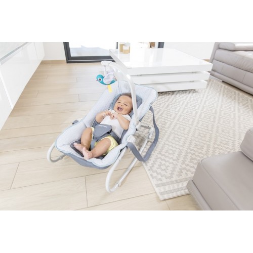Шезлонгът е незаменим помощник в отглеждането на бебето. В него можете да приспивате Вашия мъник, да го люлеете или да го използвате като столче.