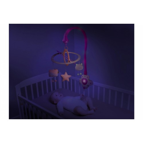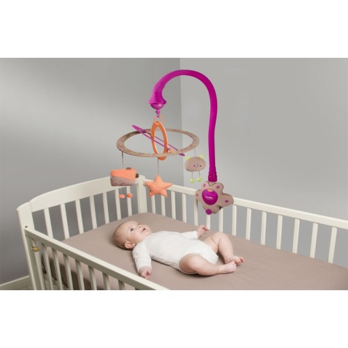 Музикалната въртележката Starlight на Babymoov е с универсално закрепване и може да се използва на всякакви легла.