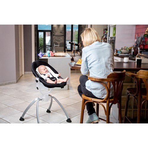 Специално създаден шезлонгът Swoon Up е идеално решение за успокояване на Вашето бебче. Благодарение на седалката която се върти на 360 градуса е удобство и голямо предимство за родителите. Снабден с възглавничка за новородени,която може да се сваля.