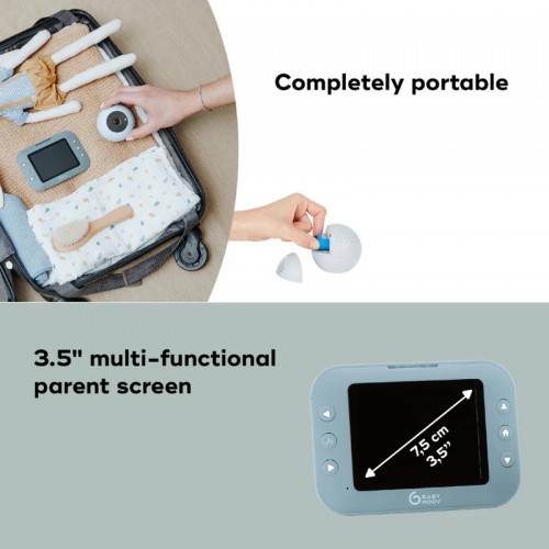 Видео бебефонът YOO Roll е с 3,5-инчов екран и обхват до 300м. Камерата и мониторът работят с презареждащи се батерии, които издържат до 8 часа в непрекъснат режим - без излишни кабели в стаята.