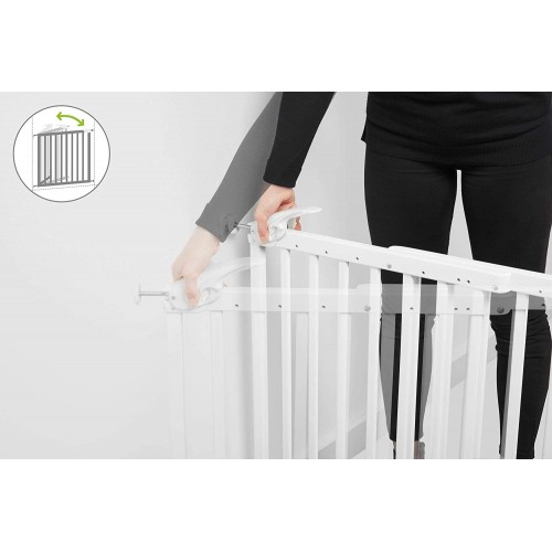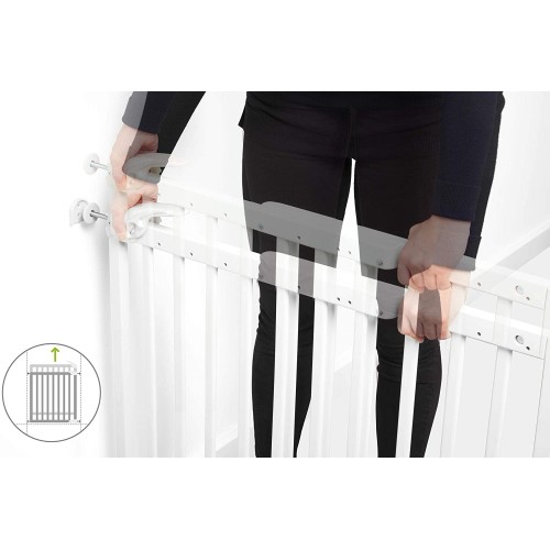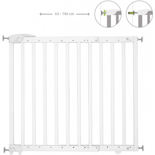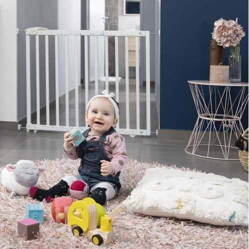 Един от най - вълнуващите моменти в израстването на детето е, когато то започва да пълзи и да прави първите си стъпки. С тях идва и времето да обезопасим дома си. Трябва да ограничим достъпа на малките, любопитни изследователи до потенциално опасните места - стълбището, кухнята, терасата и т.н. Най-бързият и лесен начин за това е със защитната преграда на Badabulle Deco Pop. Можете да избирате дали да я монтирате под напрежение (без пробиване) или да я захванете за стената с винтове. Независимо от метода на монтаж, който използвате, защитната врата се поставя бързо и лесно - само за 10 минути. Няма подова шина, която да пречи на преминаването или да създава предпоставка за спъване.