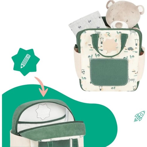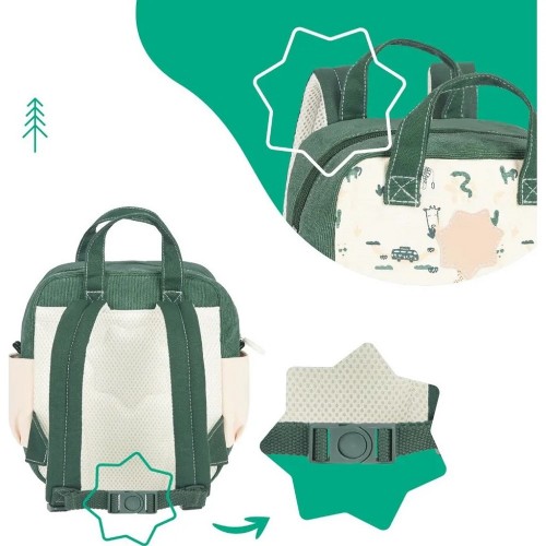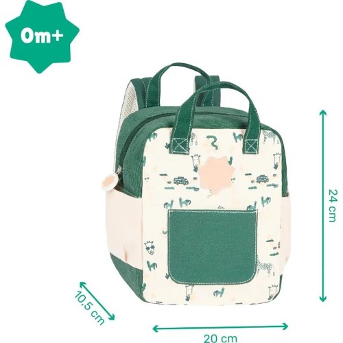 Детска мини раница за най-малките, идеална за детска ясла, детска градина, на гости при баба и дядо, на път, на почивка и т.н. С регулируеми презрамки за гърба и горни дръжки за носене в ръка.