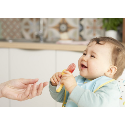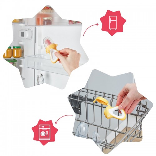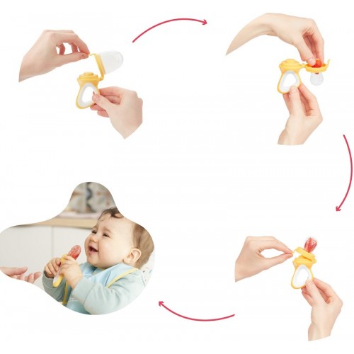 Със силиконовата мрежа за плодове ще стимулирате детето да се храни само без да се притеснявате, че може да погълне по-едри парчета храна. В горната си част има силиконово контейнерче с малки отвори, в което може да сложите любимия плод на детето. Има удобна, заоблена дръжка, предназначена за малките детски ръчички. В мрежата може да се сложи и охладен плод, така че да успокоява раздразнените и чувствителни венци, когато растат зъбките.Характеристики: