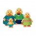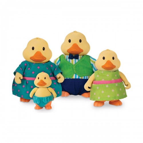 - В комплекта ще откриете 4 кукли патета: Татко Куинси, Мама Капи и техните деца Кели и Кени, като всяка фигурка е с подвижни ръце, крака и глава. Също така има и книжка на английски език с интересни истории за патешкото семейство.