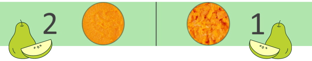 За текстура, по-подходяща за малки деца, използвайте скорост на пасатора 2 (грубо пасиране) или 1 (с парченца).