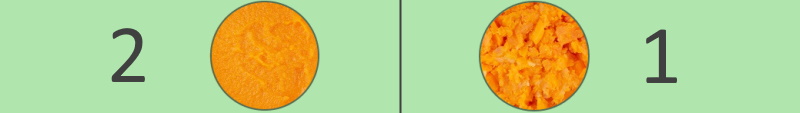 За текстура, по-подходяща за малки деца, използвайте скорост на пасатора 2 (грубо пасиране) или 1 (с парченца).