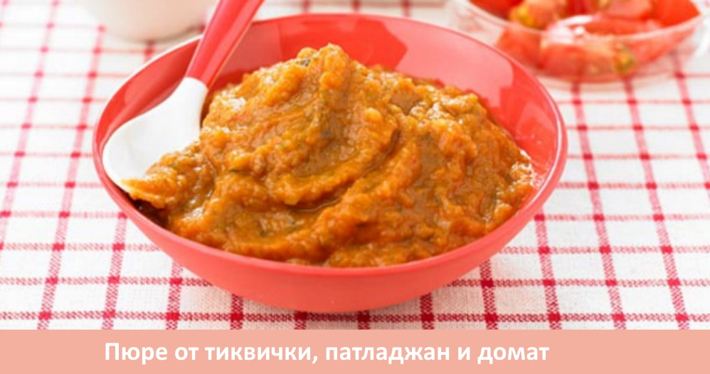 Пюре от тиквички, патладжан и домат за деца на възраст 6-9 месеца