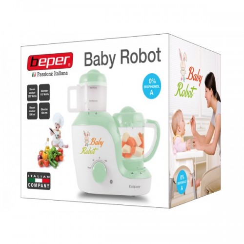 Роботът за приготвяне на пюрета Beper 90.910 е най-добрият помощник на майките през периода на захранване на детето, когато те започват да приготвят първата детска храна след храненето с мляко. Характеристики: