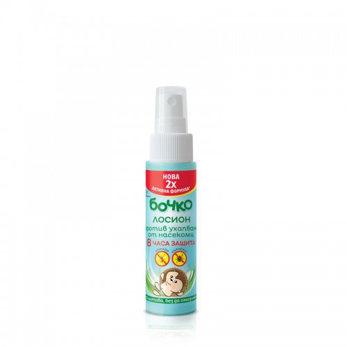 Новата, два пъти по-активна формула на лосиона Бочко държи неприятните насекоми далеч от детето до цели 8 часа! С добавено масло от евкалипт цитрудора, известно със способностите си да отблъсква кръвосмучещи насекоми. С едно напръскване ще се радвате на весели игри, спокоен сън и лежерни разходки на открито.Характеристики: