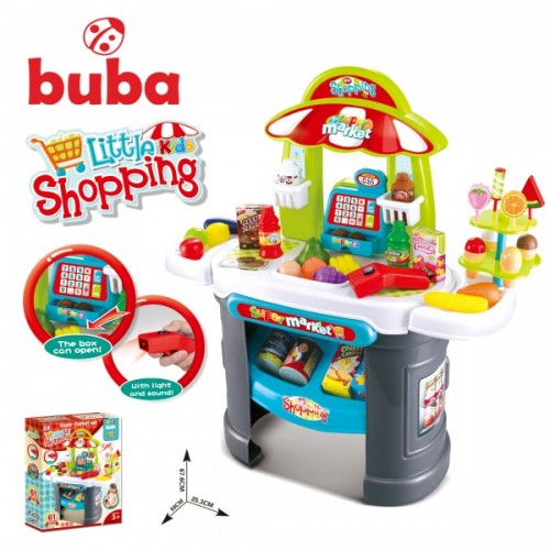Комплектът на Buba е чудесна играчка, от която детето Ви няма да иска да се откъсне. Докато се забавлява играейки със супермаркета, детето ще се научи да брои, пазарува, да плаща и да връща ресто.