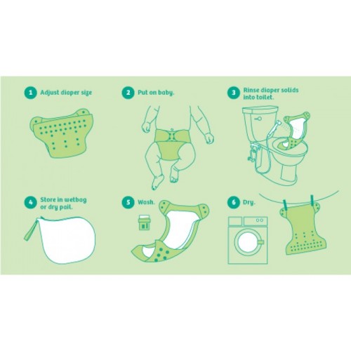 - Три размера в едно – малък, среден и голям, регулиращи се посредством копченца в предната част на пелената. Те позволяват да коригирате размера, докато бебето ви расте.