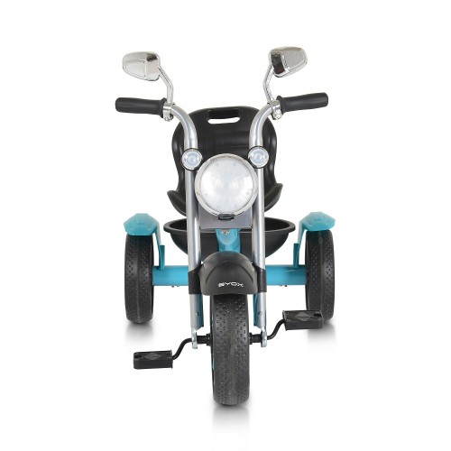 Детска триколка, подходяща за деца на възраст над 3 години и с максимално тегло до 25 кг. Има удобна седалка с облегалка, която може да се регулира в две позиции и кормило за управление. Колелото има светещ фар с мелодии и ретро огледала на кормилото.