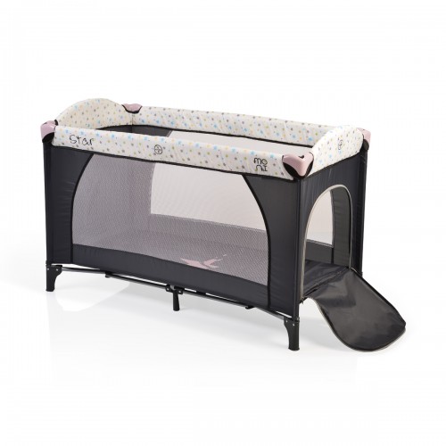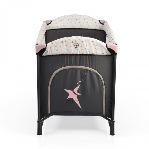 Бебешката кошара е практична и компактна,има 1 ниво и страничен вход с цип, подходяща при по-дълги и чести пътувания.