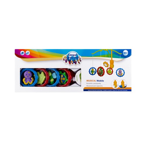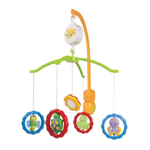 Цветна музикална въртележка със забавни въртящи се играчки и приспивна песен,които не само ще успокоят бебето и ще му помогнат да заспи, но и развиват слуховата и зрителна координация на бебето. Може да се монтира както на дървено легло, така и на сгъваема кошара.Характеристики: