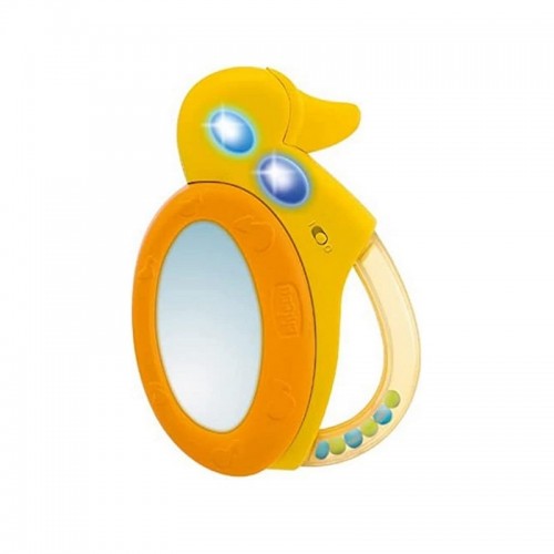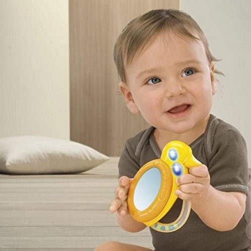 Има 2 мелодии, забавни светлинки, бебешко огледалце и механична дрънкалка с топченца.