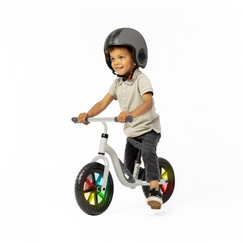 Има интегрирана в рамата дръжка за носене, седалката и кормилото се регулират, съобразно ръста на детето. Дизайн с изчистени линии и цветни, светещи спици.