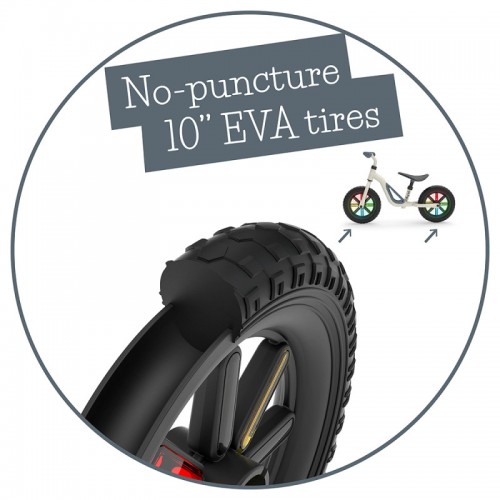 Детско колело за балансиране Charlie Glow е с 10-инчови гуми.