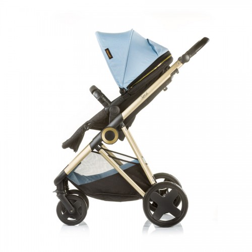 Лека, модерна и удобна количка, подходяща за бебета от 0 месеца до 15 кг. Кошът за новородено има удобна дръжка за носене и меко матраче.