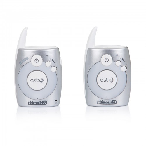 Дигитален бебефон Астро с VOX функция и двупосочна връзка. Има вградена нощна лампа, която може да се регулира и от двете устройства.