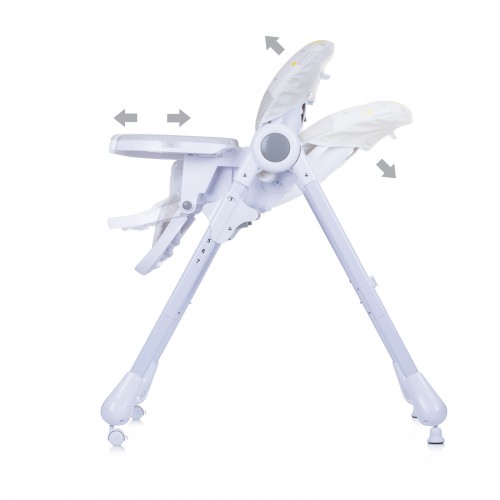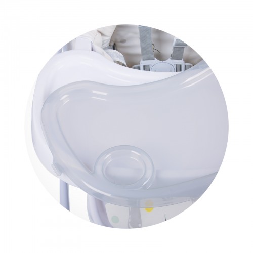 Комфортно и удобно столче за хранене, подходящо за деца, които могат да седят самостоятелно и с тегло до 15 кг. Може да се регулира във височина, почиства се лесно и има двойна, регулираща се табла.