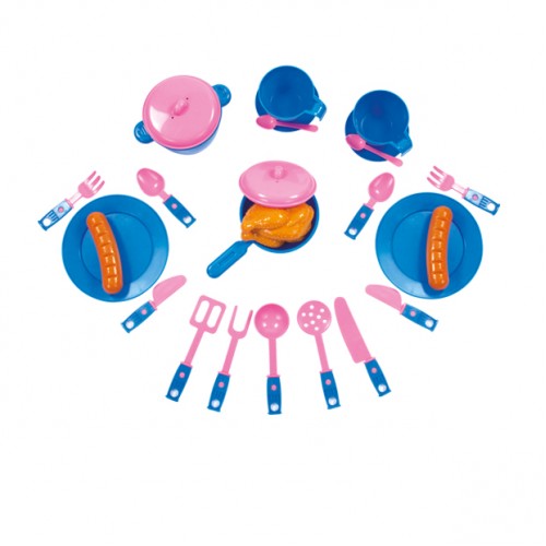 - Комплектът съдържа: плот с умивалник, тенджера, тиган, чашки, кухненски прибори
