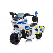 Акумулаторен мотор с реалистичен дизайн и размер, подходящ за деца. Дизайн в бяло и синьо с надписи ..