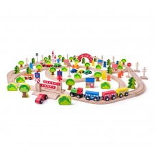 Дървеното влакче с релси и локомотив с батерия е перфектният комплект за малките любители на влакове..