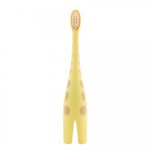 Детска четка, подходяща за почистване на първите зъбки и венците. Тя е мека, с гъвкаво тяло във формата на жирафче.
