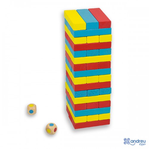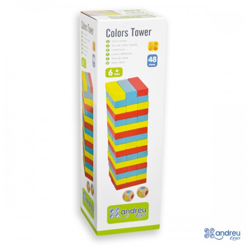 Build the tower mixing the colored pieces, roll the dice, try to get a piece of the same color and place it on top of the tower, but be careful not to drop the tower or you will lose the game!
