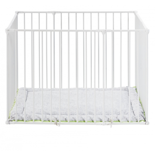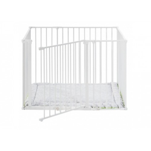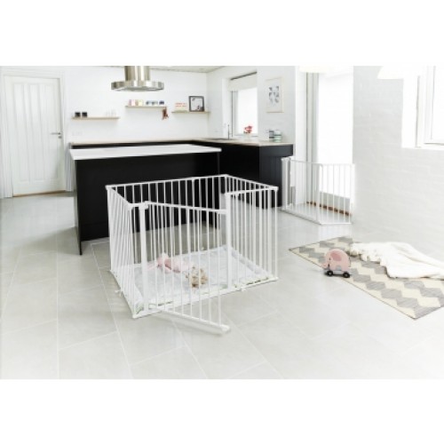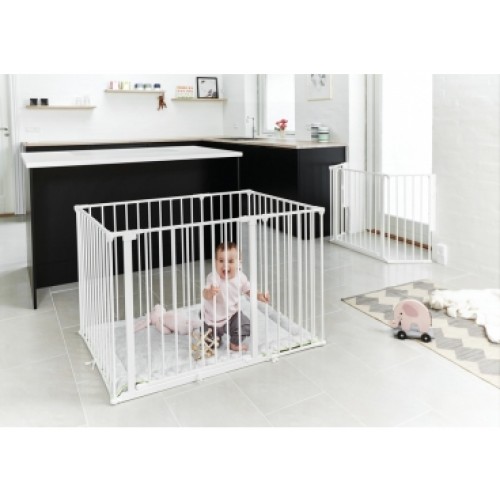 Give your little one a safe place to play with the BabyDan Square playpen with a soft playmat. You can open the gate both ways with just one hand. By purchasing a wall attachment kit, you can easily convert the playpen into a safety gate when your child gets too big for the playpen. The safety gate is ideal as a room divider, used for a wide or irregular staircase, doorway, or fireplace. To make it gate more flexible, you can extend it with both small and large sections, which you purchase separately.- Playpen with playmat