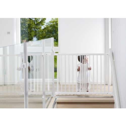 - The Flexi Fit is a unique and ultra flexible installation system, which will fit almost any opening. The wall fittings can be turned to fit either inside or outside the door frame. The Flexi Fit gate can open in both directions, and it can be operated with one hand. Quick release makes it easy to mount and detach if required.