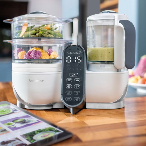 Healthy eating is essential not only for our children, but for our entire family. However, preparing a daily menu takes a lot of time and effort.With the combined Babymoov Nutribaby (+) cooking appliance, eating becomes real fun:As well as saving time and space in the kitchen, the appliance also offers several great opportunities to reinvent our culinary talent! From the birth of your baby, Babymoov's Nutribaby Plus Robot helps you sterilize bottles, warm milk or steam your first mouthfuls.With its design and compact size, Nutribaby Plus is easy to use.Features: