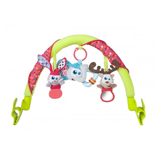 Babymoov Universal Active Gymnastics can be attached anywhere with its two universal clamps (deck chair, stroller, seat, etc.).There are three different toys that will entertain and keep your little one's attention.These are bunny rabbit, deer mirror and plush elephant.Features: