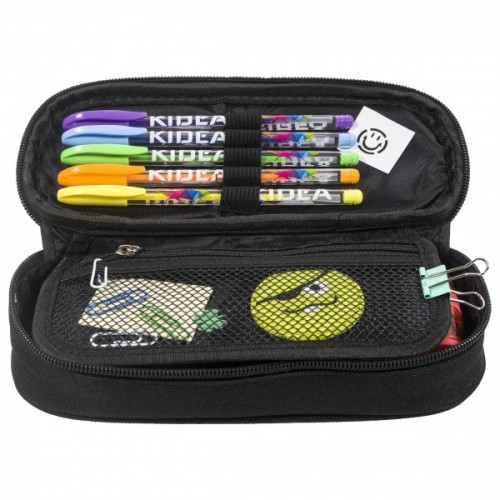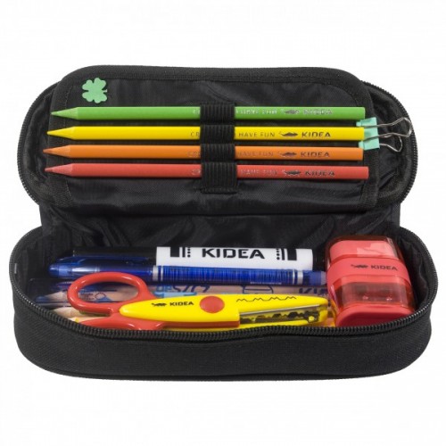 - Inside there is an organizer for 5 pencils and a zipped pocket.