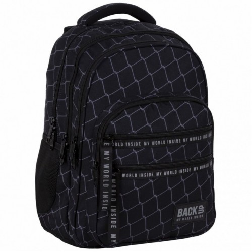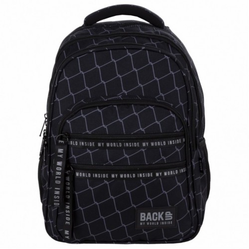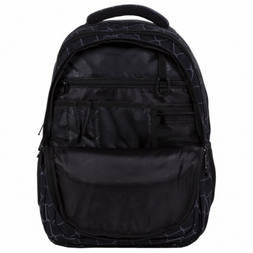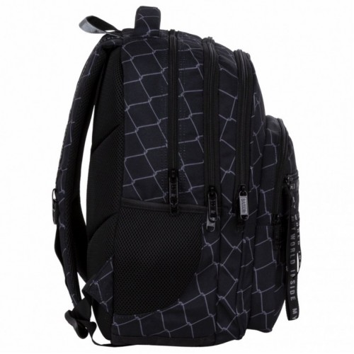 Comfortable School backpack with 3 large compartments, 3 zipped front pockets and padded shoulder straps.