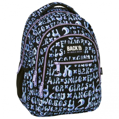 Comfortable School backpack with 3 large compartments, 1 zipped front pocket and padded shoulder straps.