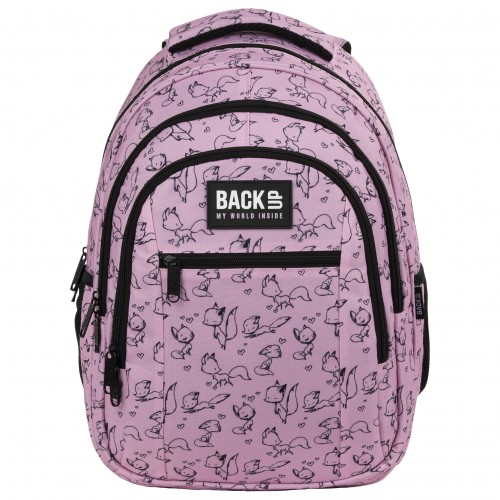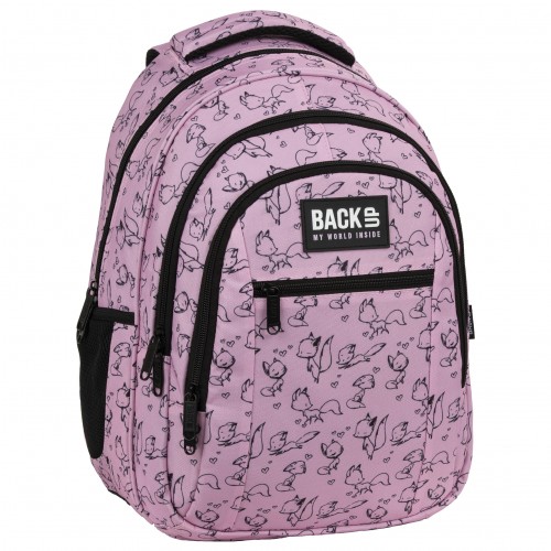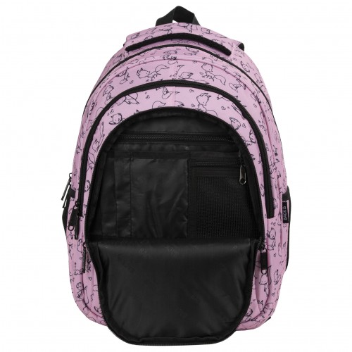 Comfortable School backpack with 3 large compartments, 1 zipped front pocket and padded shoulder straps.