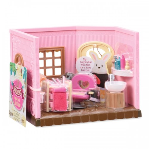 - Do your Li’l Woodzeez® need a trim? Bring them to the Baabaa Spa & Hair SalonTM in Honeysuckle Hollow®! There are lots of hair accessories in this miniature playset, including a hairdryer, straightener, curling iron, and comb. Your animal characters can sit in the chair with their cape and relax as they get a makeover! There are also interchangeable wigs so your furry figurines can try out a whole new look. It’s never a bad hair day at the Baabaa Spa & Hair SalonTM!